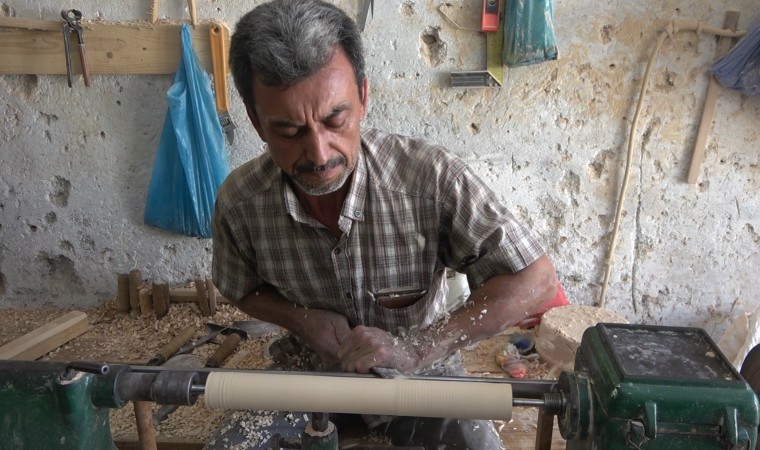 Osmaniye’de yaşayan Ali İğneci (55), tarihin geleneksel meslekleri arasında bulunan ahşapçılık mesleğini 40 yıldır severek devam ettiriyor. Asrın felaketinde iş yeri ağır hasar aldığı için bir süre severek yaptığı meslekten uzak kalan İğneci, mesleğini sürdürmenin mücadelesini veriyor. Ali İğneci, eskiden çocukların daha kolay yürümelerini sağlamak ve ayaklarının güçlenmesi için ahşap ustaları tarafından yapılan ve halk arasında "çıkrık" olarak da bilinen bebek yürüteçlerine ilgi kalmadığını, artık sipariş usulü çalıştıklarını söyledi.