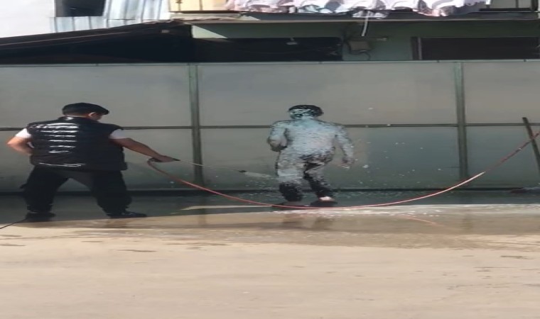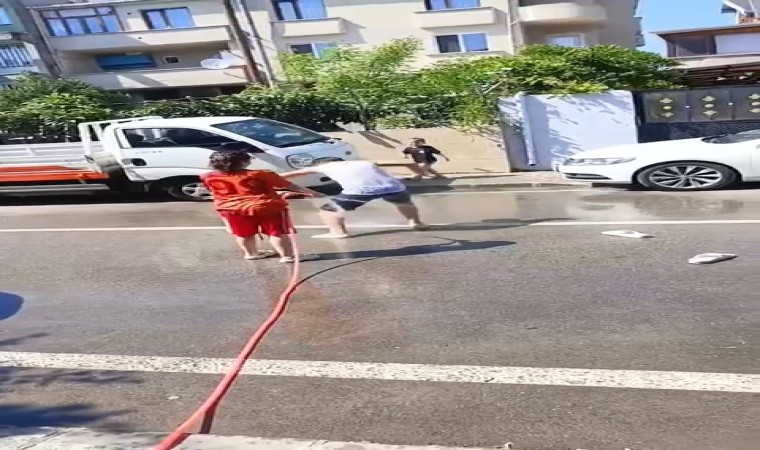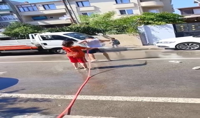 Hava sıcaklığının 32 derece ölçüldüğü Kocaeli’de sıcaktan bunalan çocuklar çareyi farklı yöntemlerde buldu. Yeşilova Mahallesi’nde vatandaşlar tarafından kayda alınan bir görüntüde, çocukların akaryakıt istasyonunda araçların yıkandığı köpüğü birbirlerine sıktığı anlar yer aldı. Önce köpüklenen, sonra da suyla temizlenen çocukların bu tehlikeli eğlencesi ortaya ilginç görüntüler çıkardı. Bir başka mahallede çekilen görüntüde ise çocukların sokak ortasında hortumla birbirlerini ıslatarak serinlemeye çalıştığı görüldü.