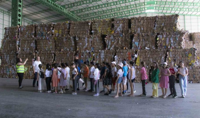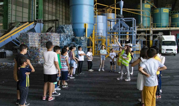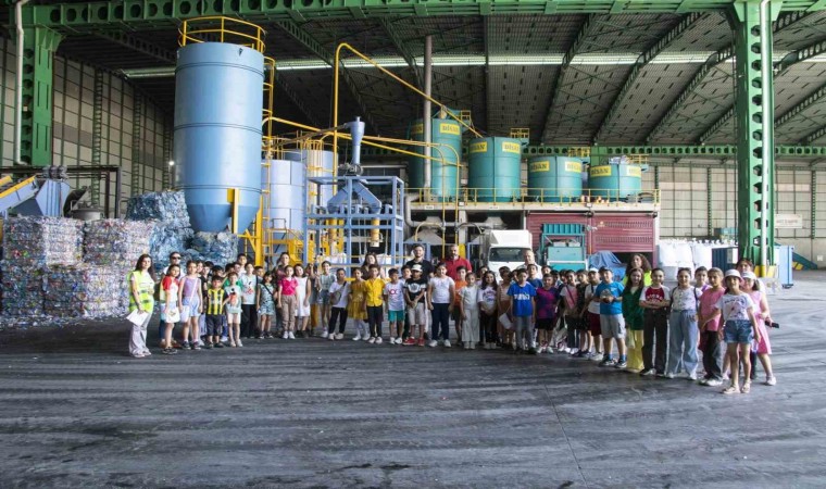 Mersin Büyükşehir Belediyesinin düzenlediği teknik geziye katılan çocuklar, atıkların sınıflandırılması ve ayrıştırılmasını yerinde inceledi.