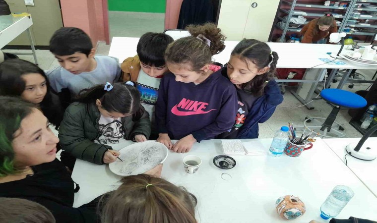 Yüksekokul seramik ve çini atölyelerinde gerçekleşen etkinlikte çocukların ilgi ve heyecanı yüzlerine yansıdı.