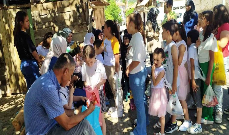 Kütahya’nın Hisarcık ilçesinde Ramazan ve Kurban Bayramı arefesinde çocuklar mahallelerde ev ev dolaşarak vatandaşlar tarafından adak olarak dağıtılan şeker, kek ve çikolataları topluyorlar.