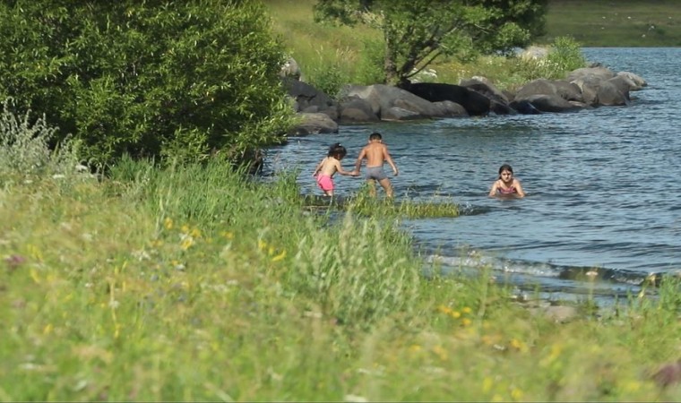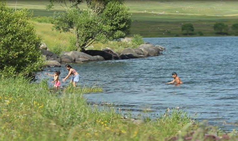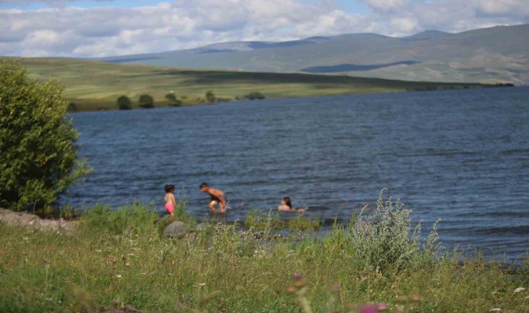 Ardahan’ın Çıldır ilçesindeki Çıldır Gölü, havaların ısınmasıyla birlikte Ege ve Akdeniz sahillerini aratmıyor. Sıcak havada bunalan çocuklar, serinlemek için Çıldır Gölü’ne akın ediyor.