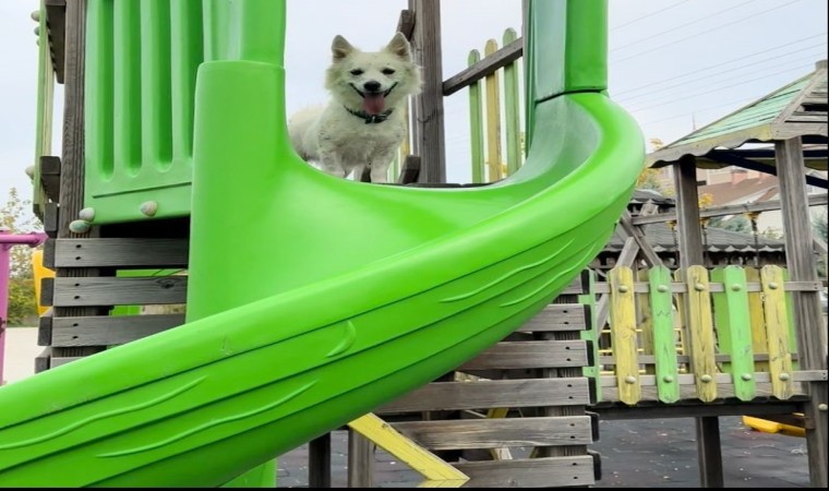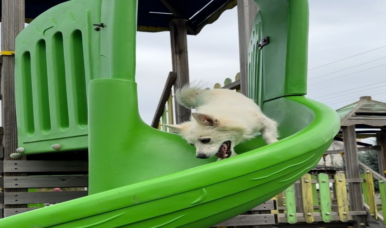 Samsun’da bir oyun parkında kaydıraktan kayan köpek yüzlerde tebessüm oluşturdu.