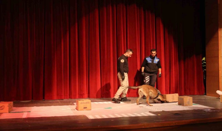 Konuşmanın ardından polis köpeğinin gösterisi çocuklar tarafından büyük beğeni topladı.