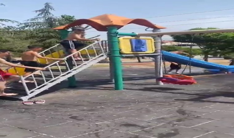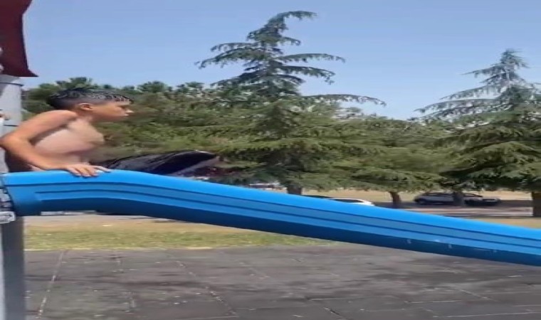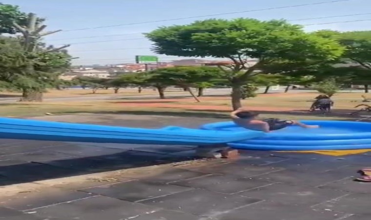 Bunaltıcı hava sıcaklığının etkili olduğu Kocaeli’de çocuklar serinlemek için kendi aquaparkını kurdu. Şişme havuzu kaydırağın altına koyarak suyla dolduran çocuklar, hem eğlendi hem serinledi.