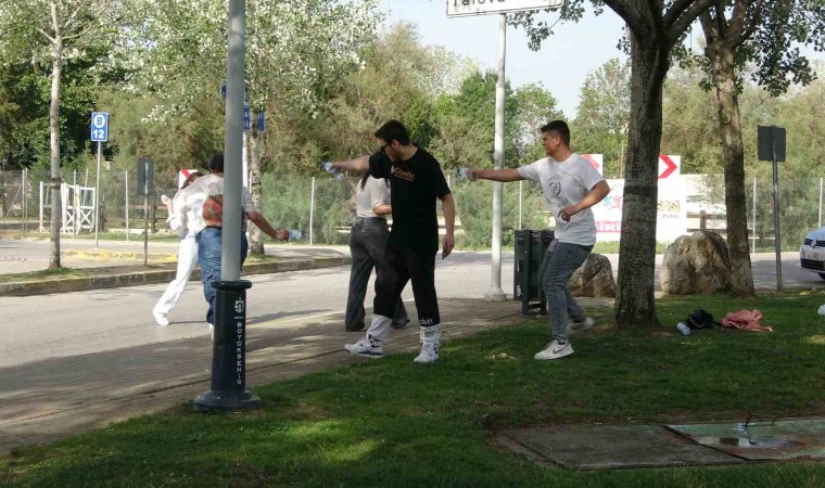 Samet Can Özbek ise "Havalar gerçekten çok sıcak. Bizde arkadaşlarla toplandık, su savaşı yapmak istedik. Hem eğleniyoruz hem serinliyoruz" diye konuştu.