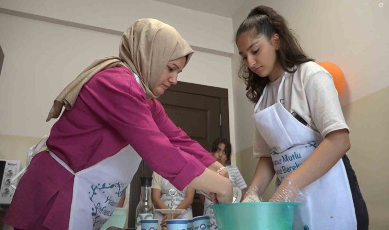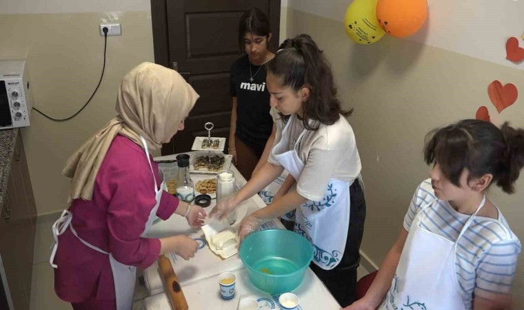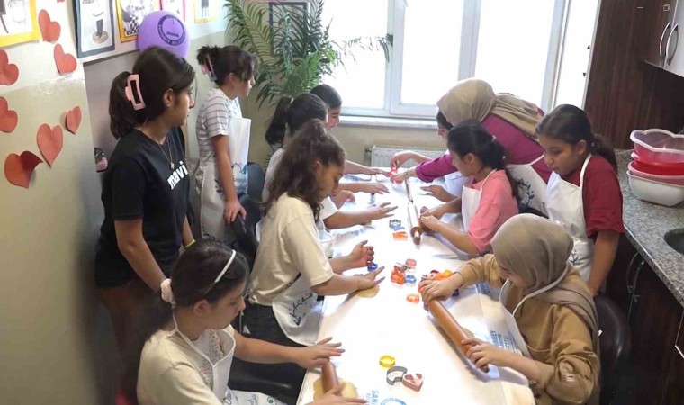 Gaziantep’te Şahinbey Belediyesinin mutfak atölyesinde düzenlenen eğitimlere katılan çocuklar, poğaça, kek ve kurabiye yapımını öğreniyor.