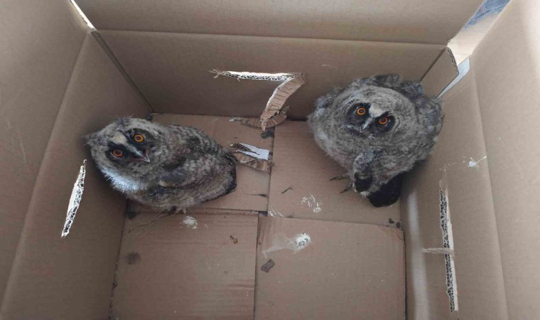 Çorum’un Sungurlu ilçesinde parkta oynayan çocuklar tarafından bulunan 2 yavru puhu kuşu, ekiplere teslim edildi.