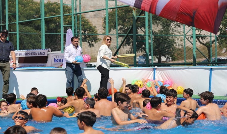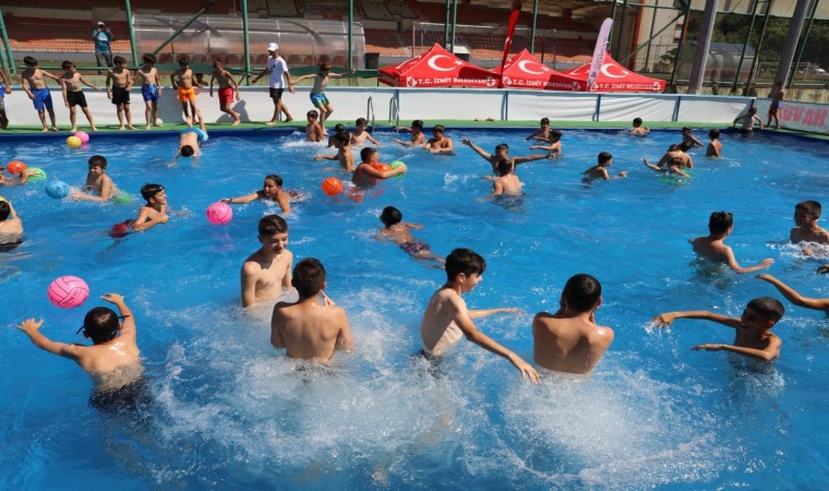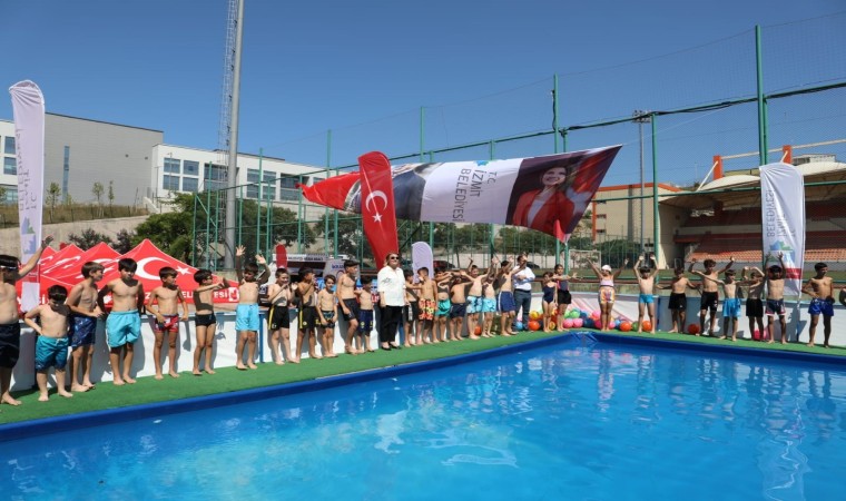 İzmit Belediyesi’nin Cephanelik Spor Tesisleri’nin yanında kurulumunu tamamlayarak çocukların hizmetine sunduğu portatif yüzme havuzu yoğun katılımla açıldı.