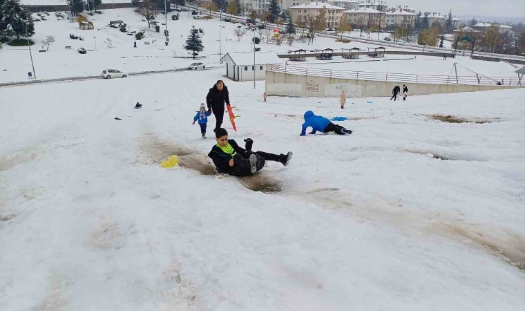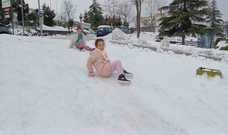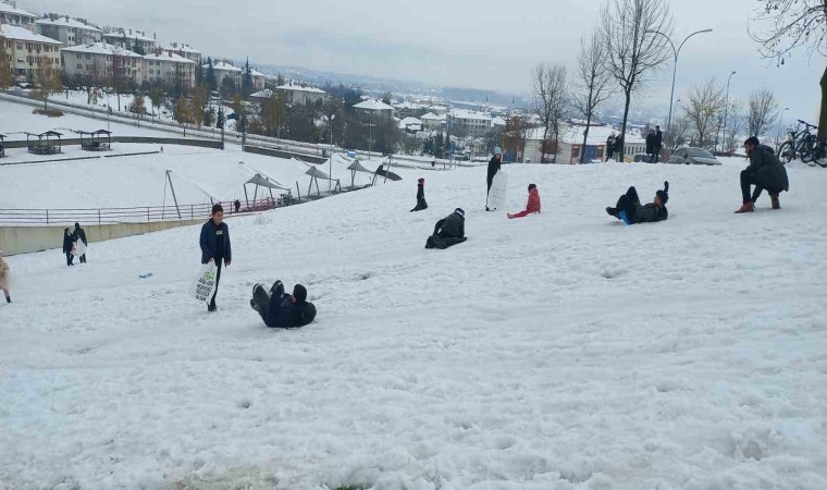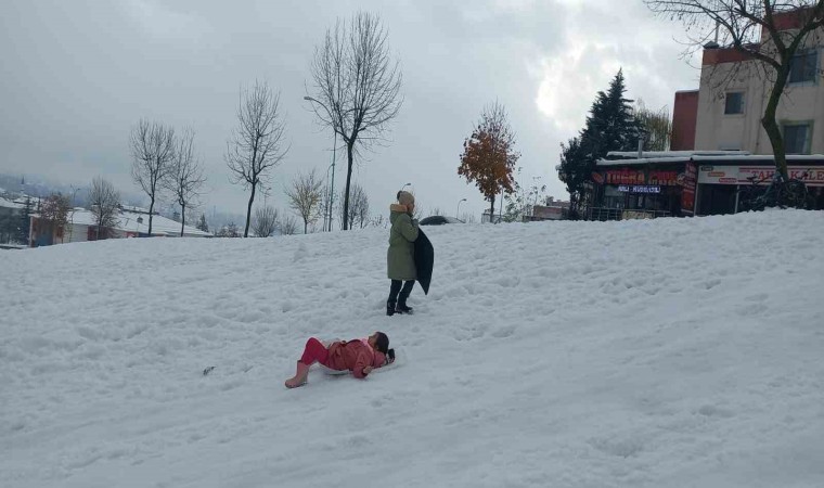 Düzce’de hafta sonu aralıklarla yağan kar yaşamı olumsuz etkiledi. Yoğun kar yağışı nedeniyle Düzce Valisi Selçuk Aslan, eğitime 1 gün (25 Kasım 2024) ara verildiğini açıkladı. Eğitime verilen arada aileler çocukları ile birlikte kar tatilinin tadını çıkarttılar. Düzce’nin Bahçeşehir Bölgesinde bulunan park alanında yamaçlara çıkan aileler, çocuklarıyla birlikte yanlarında getirdikleri poşet, bot, kızak ile kayarak doyasıya eğlendiler.