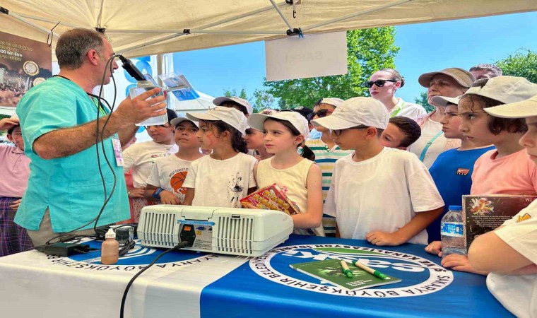 Sakarya Büyükşehir Belediyesi Su ve Kanalizasyon İdaresi (SASKİ), Çevre Haftası Çocuk Şenliği’nde miniklere suyun değerlerinin ölçümünü uygulamalı olarak anlattı.