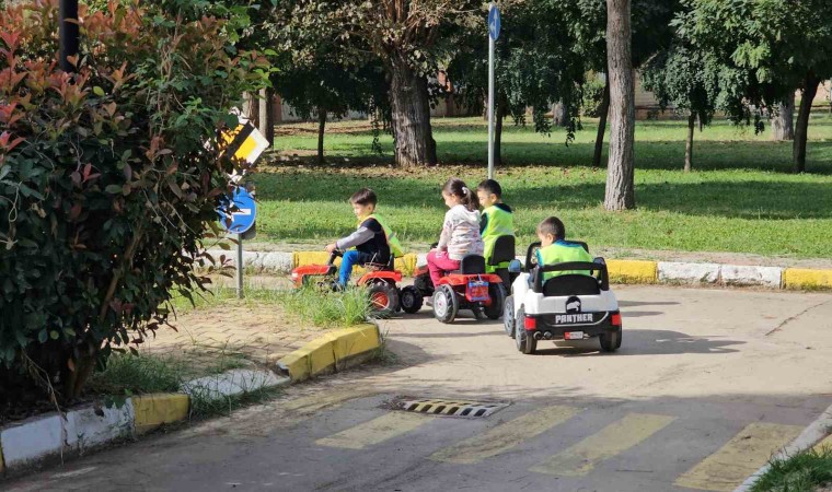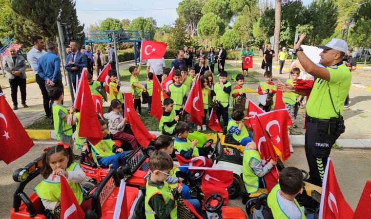 Aydın’ın Nazilli ilçesinde çocuklar trafik kurallarını eğlenerek öğrendi.