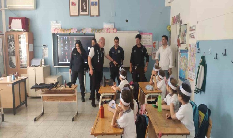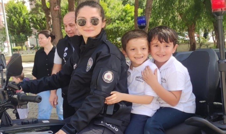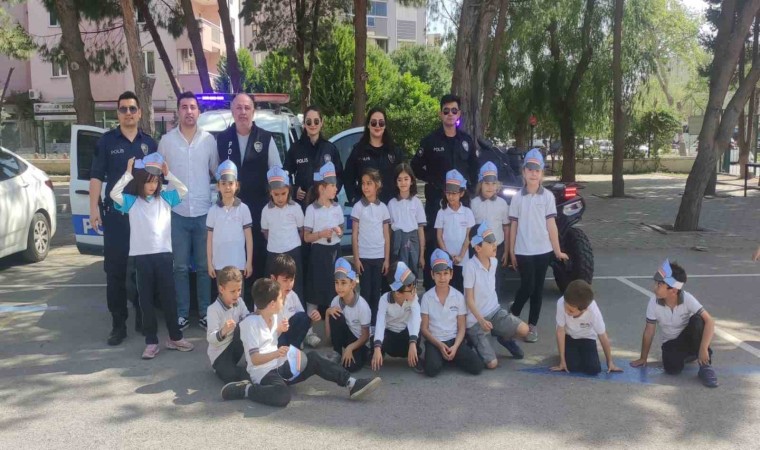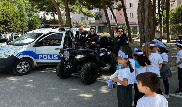 İzmir’in Bayraklı ilçesinde polis ekipleri, ilkokul 1’inci sınıf öğrencilerine polislik mesleğini anlatarak mesleği sevdirdi.