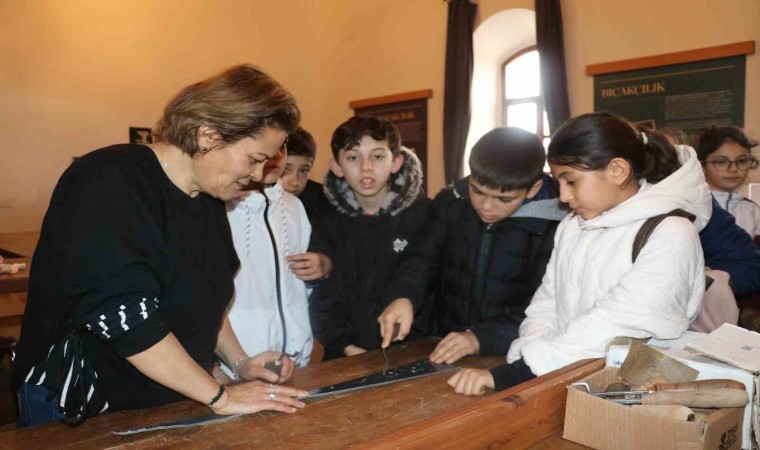Aras Üner isimli ortaokul öğrencisi ise bakır işlemeciliği deneyip öğrenmeye çalıştıklarını ifade edip, ”Bugün sanayi mektebini gezdik. Burada gezmek gerçekten çok güzeldi. Bakır işlemeciliğini deneyip öğrenmeye çalıştık. Eserlerin yapımı yapanlar için zor oluyordu” diye konuştu.