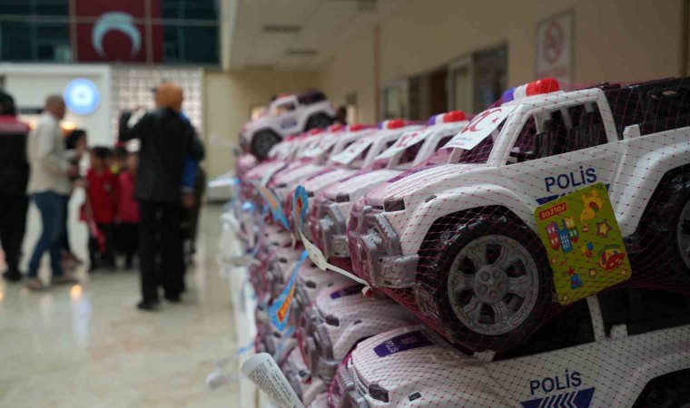Bolu Emniyet Müdürlüğünde çocuklara oyuncak polis araçları dağıtıldı. Oyuncaklarını alan çocukların mutluluğu gözlerinden okundu.