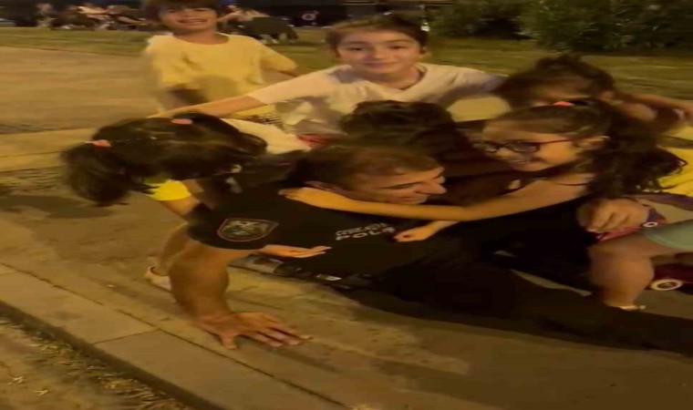 Samsun Emniyet Müdürlüğü Çevik Kuvvet Şube Müdürlüğünde görevli polisler, Atakum ilçesi Adnan Menderes Sahil Bulvarı’nda devriye gezerken, çocukların yoğun ilgisiyle karşılaştı. Çocuklarla yakından ilgilenen Çevik Kuvvet Polisi Okan Kılıçer, çocukların hep birlikte kendisine sarılması sonucu yere yuvarlandı. Çocukların polis sevgisi cep telefonu kamerasına yansırken, görüntüler sosyal medyada da büyük ilgi gördü.