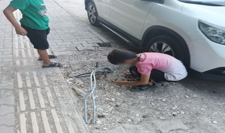 Adıyaman’da yaşı küçük çocuklar açıkta bırakılan elektrik kablolarıyla oynayarak canlarını tehlikeye atıyor.