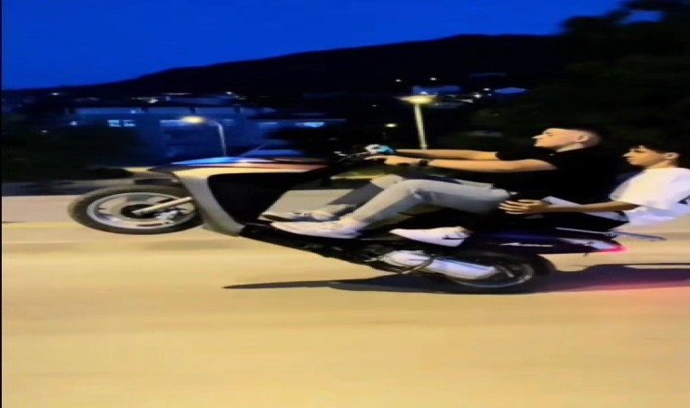 İlçedeki İstanbul caddesi üzerinde, beraber yol alan başka bir motosiklet sürücüsünün cep telefonu ile çekip sosyal medyada paylaştığı görüntüler üzerine polis harekete geçti. Motosikletinin ön tarafını kaldırmak suretiyle trafik güvenliğini tehlikeye düşüren ve gürültü yapmak suretiyle vatandaşlara rahatsızlık veren ayrıca motosikletinde plaka bulunmayan A.T.S. isimli şahıs ekipleri tarafından yakalandı. Şahsa sürücü belgesiz araç kullanmak, kask olmadan motosiklet kullanmak, tehlikeli ve çevredekileri rahatsız edecek derecede gürültü çıkaran araçları kullanmak maddelerinden toplam 26 bin 90 TL idari para cezası uygulandı. Ayrıca ekipler plakasız motosiklet trafikten men etti.