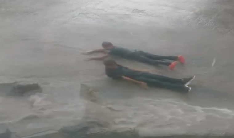 Eskişehir’de kuvvetli sağanak yağış sonrası oluşan su birikintilerinin içine girerek anın tadını çıkartan çocukların ilginç oyunu görenleri hayrete düşürdü. Herkesin ıslanmamak için kapalı alanlara sığındığı anlarda sokaklara serilen çocuklar, etraftan akan suyla adeta duş aldı.
