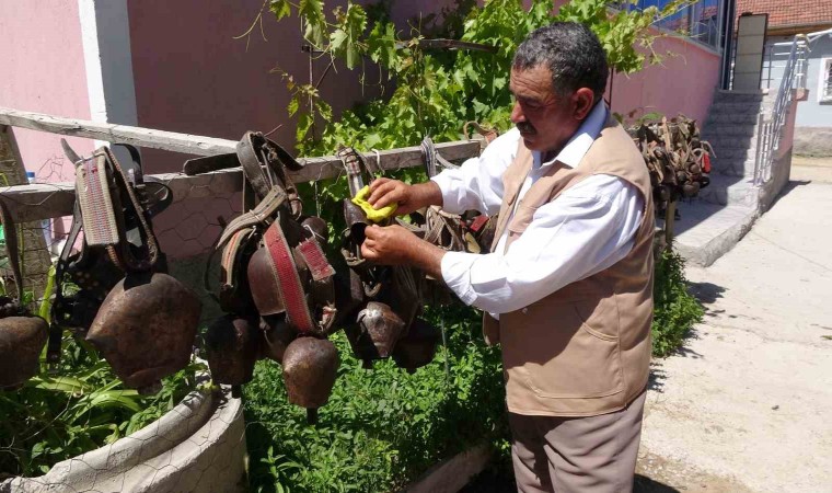 Yozgat’ın Sarıkaya ilçesinde besicilikle uğraşan Abdullah Eroğlu, küçükbaş hayvanların boyunlarına ses çıkarması için takılan ve tamamen el emeğiyle yapılan tongurdakların çocuk yaşlardan itibaren koleksiyonunu yapıyor.