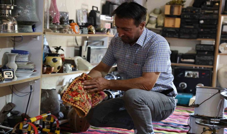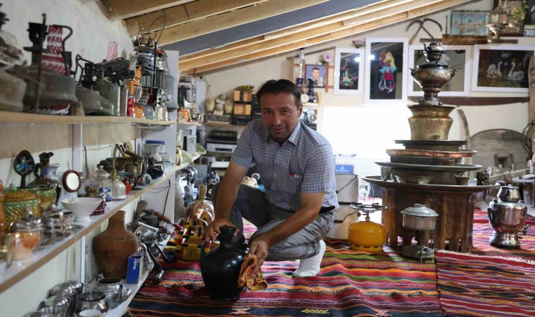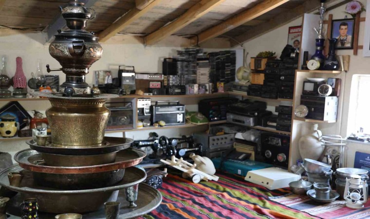 Hazırladığı odayı güvenlik kamerası ile 7 gün 24 saat kontrol eden Adem Karaman, “Çocukluktan beri eşya topluyordum. Çatı katında kendime ait bir oda yaptım. Orada antikaları topladım, biriktirdim. 15 yaşından bu yana ilk önce pul koleksiyonuyla, demir paralarla biriktirmeye başladım. Ondan sonra evi yapınca eski kilimlerden tespihlerden, teyp kasetinden, teyplerden kendime burayı yaptım. Burada 2 bin parçaya yakın malzeme var. Gelip görenler ben beğeniyor. Boş zamanlarda geliyorum burada çay içiyorum, oturuyorum eskiyi burada yaşatıyorum. Bu odada geçmişe yolculuğa çıkıyorum. Eskilerden gaz ocağım, gaz lambaları, kilimler, paralar, tespihler, telefonlar var. Bayağı bir malzeme var. İleride öteki odaya da geçeceğim. Evin çatı katı komple müze gibi olacak” şeklinde konuştu.