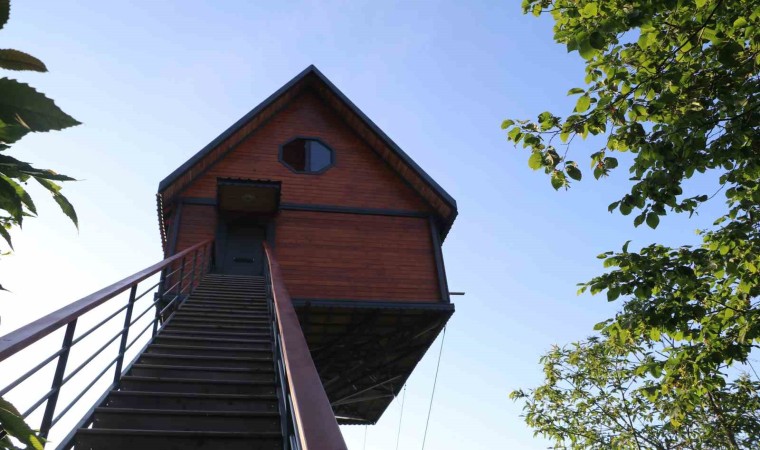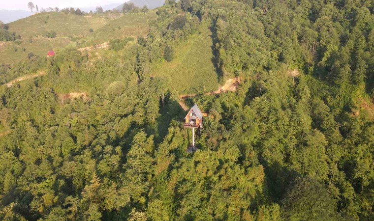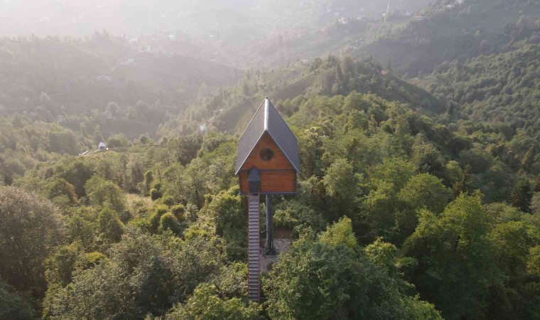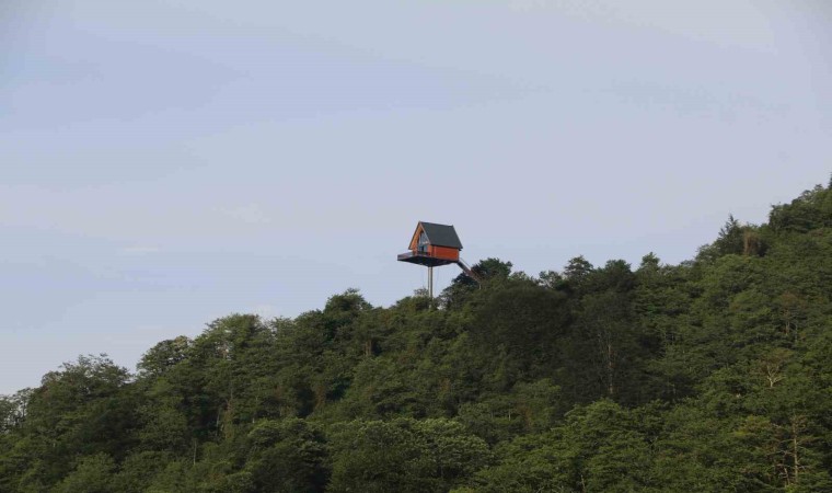 Rizeli kaporta ustası Cihat Çelik, arkadaşından satın aldığı 12 metrelik direğin üzerine 3+1 ev yaptı.