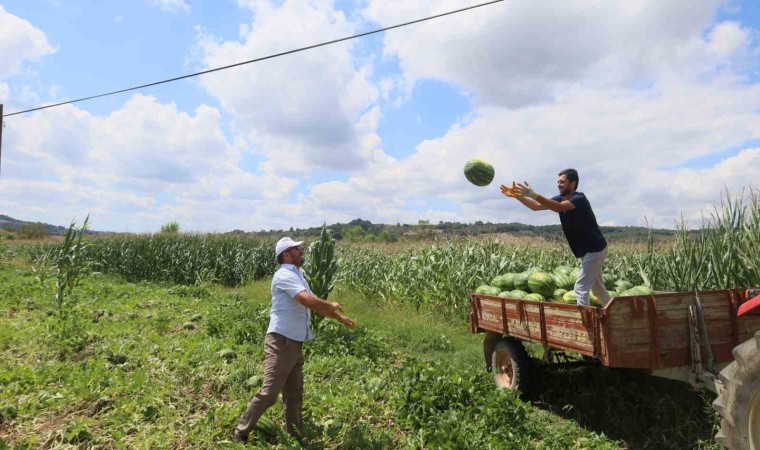 Damla sulama sistemiyle yetiştirilen ve yeterli olgunluğa ulaşan karpuzlar, elle hasat edilerek traktörlere yükleniyor, daha sonra satış noktalarına gönderiliyor. Birçok üretici, aile bireylerinin desteğiyle ürünlerini tarladan kaldırıyor. Oldukça meşakkatli ve yorucu olan karpuz hasadı, ürünlerin verimli ve bol olması dolayısıyla üreticilerin tüm yorgunluğunu alıyor. Şölen havasındaki hasadın, ağustos sonuna, en geç eylül başına kadar sürmesi bekleniyor.