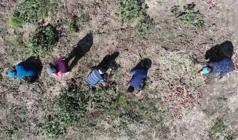 Sabahtan akşama kadar tarlada soğan sökümü yaptıklarını anlatan çiftçi Nuray Peker, "Sökücüler ayrı, kesiciler ayrı, kovaları dökenler ayrı. Biz de kesiyoruz. Günümüz böyle geçiyor. Sabahtan akşama kadar bu işi yapıyoruz. Köyümüzün soğanı tescilli, alan da memnun, satan da memnun. Rağbet görüyor soğanımız" ifadesini kullandı.