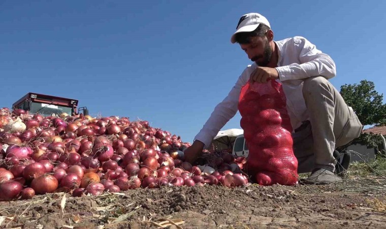 Kırıkkale’nin Yahşihan ilçesine bağlı Kılıçlar köyünde vatandaşların yüzde 90’nın gelir kaynağı olan ve geçmişi bir asır öncesine dayanan coğrafi işaretli "Kılıçlar soğanı"nın hasadı başladı. Üreticiler, 14 kilogramlık bir çuval soğanı 150 liradan müşterilerine sunuyor.
