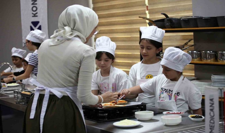 Konya’da çölyak hastası çocuklar aşçı oldu. Çocuklar, çölyak hastalığına uygun glutensiz pizza, kurabiye yaparak doyasıya eğlendi.