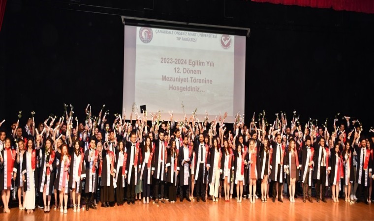 Saygı duruşu ve İstiklal Marşı’nın okunması ile başlayan törende 12. Dönem Birincisi Dr. Atakan Kutay Özdemir, Tıp Fakültesi Dekanı Prof. Dr. Muammer Karaayvaz ve ardından Çanakkale Onsekiz Mart Üniversitesi Rektör Vekili Prof. Dr. Evren Karayel Gökkaya konuşma yaptı.