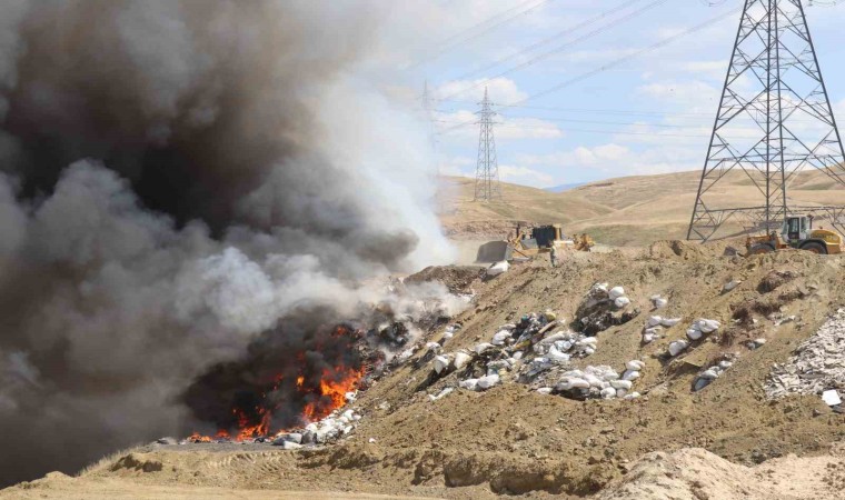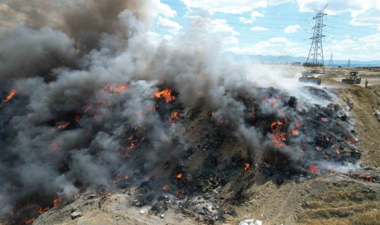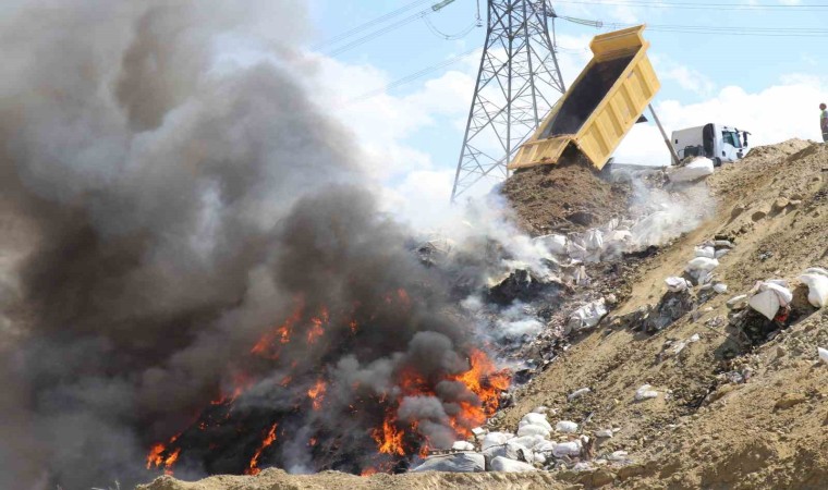 Denizli’de vatandaşların çöp ve moloz döktüğü alanda yangın çıktı. Yangına bir yandan itfaiye ekipleri müdahale ederken, diğer yandan iş makineleri ile kum dökerek söndürülmeye çalışılıyor.