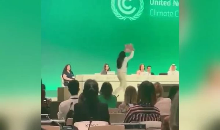 COP28’de iklim protestosu: Elinde pankartla sahneye çıktı
