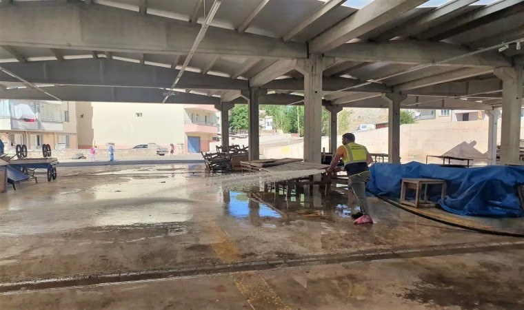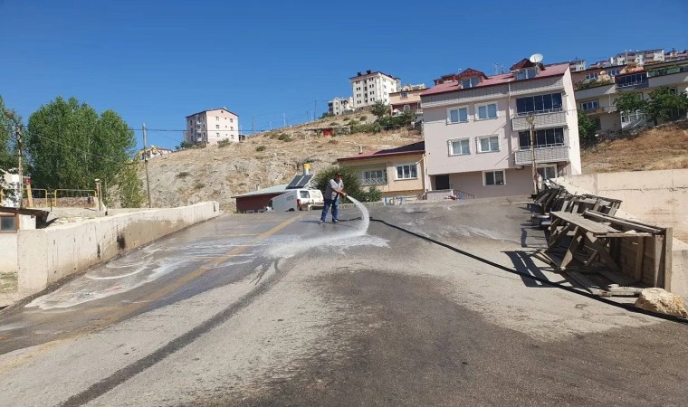 Bununla birlikte basınçlı suyla yolları yıkayarak temizlik çalışması yürüten ekiplerin, bugünkü durağı Tuzcuzade Mahallesi oldu.