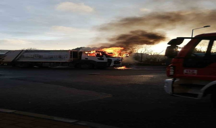 Tekirdağ Çorlu’da belediyeye ait çöp kamyonu seyir halindeyken alev alev yandı.