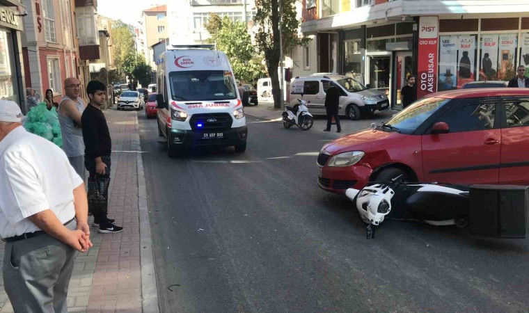 Tekirdağ Çorlu’da otomobille çarpışan motosikletli kurye yaralandı.