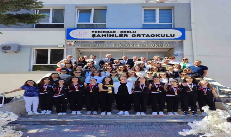 Çorlu Şahinler Ortaokulu öğrencilerinden oluşan voleybol takımı, 2023-2024 eğitim-öğretim yılı okul sporları küçükler voleybol Türkiye birincisi oldu. Şampiyon kızlar okullarında coşkuyla karşılandı.
