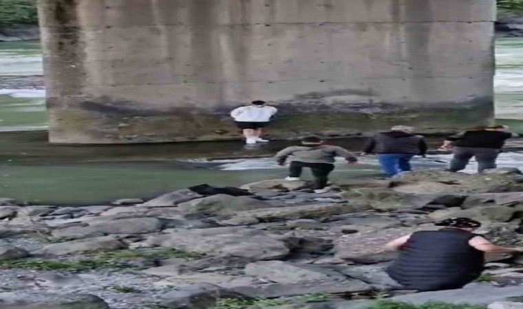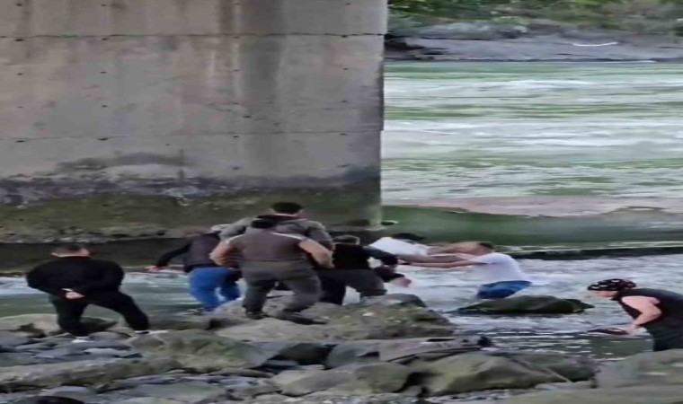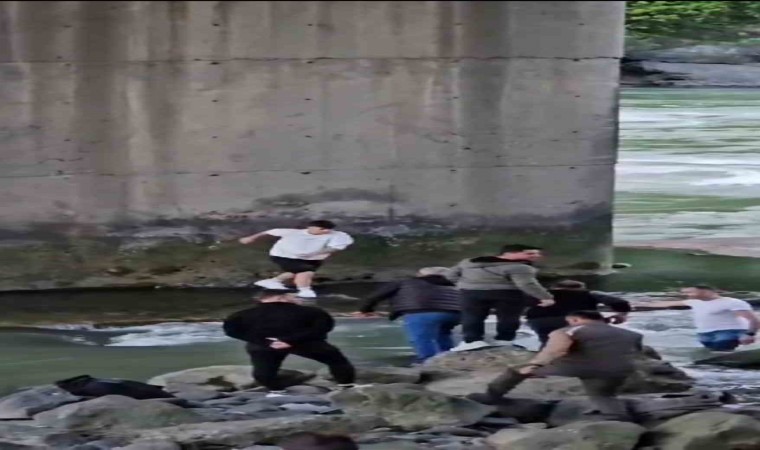 Artvin’in Borçka ilçesinde bir genç balık tutmak için gittiği Çoruh Nehri’nde baraj kapakları açılıp nehrin debisi yükselince köprü ayağında mahsur kaldı.