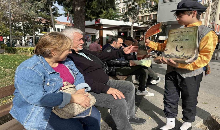 Dönem kıyafetleriyle ilgi çeken öğrenciler, ilk olarak Cumhuriyet Bayramı etkinlikleri kapsamında ilk resmi törenin yapıldığı Atatürk Anıtı’nda Cumhuriyet Mecmuası dağıttı. Vali Doç. Dr. Zülkif Dağlı, Belediye Başkanı Dr. Halil İbrahim Aşgın ve protokol üyelerinin ardından şehrin farklı bölgelerinde dağıtılan Cumhuriyet Mecmuası elden ele dolaştı.