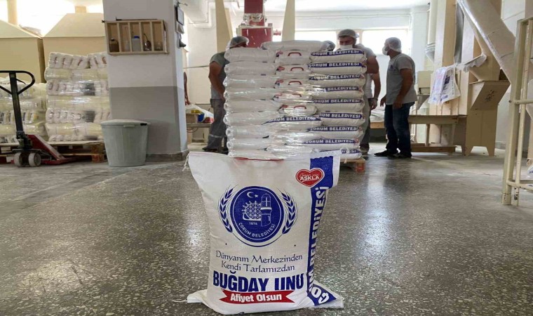 Çorum Belediyesi’nin ürettiği buğdaylar una dönüştü. 10’ar kiloluk çuvallar halinde paketlenen toplam 15 ton un, ihtiyaç sahiplerine dağıtılacak.