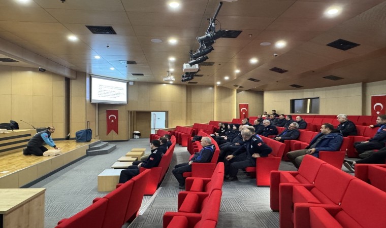 Çorum Belediyesi bünyesinde görev yapan zabıta ve özel güvenlik personeline ilk yardım eğitimi veriliyor.