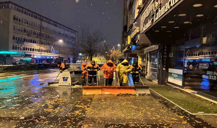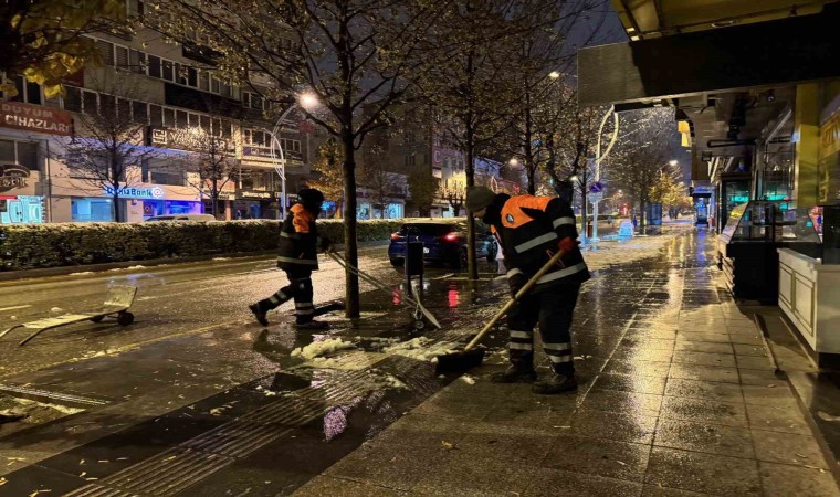 Çorum Belediyesi ekipleri, etkili olan kar yağışı sebebiyle gece boyunca mesai yaptı.