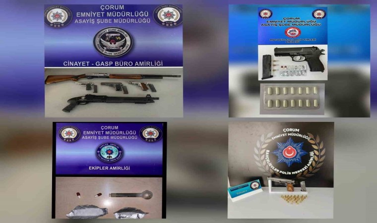 Çorum İl Emniyet Müdürlüğü’nün asayiş ve güvenliğin sağlanmasına yönelik çalışmaları devam ediyor. Asayiş Şube Müdürlüğü ekipleri tarafından 01 Mart-08 Mart tarihleri arasında yapılan şok uygulamalar ile şüphe ve ihbar üzerine yapılan çalışmalar neticesinde çok sayıda silah ve uyuşturucu madde ele geçirildi.