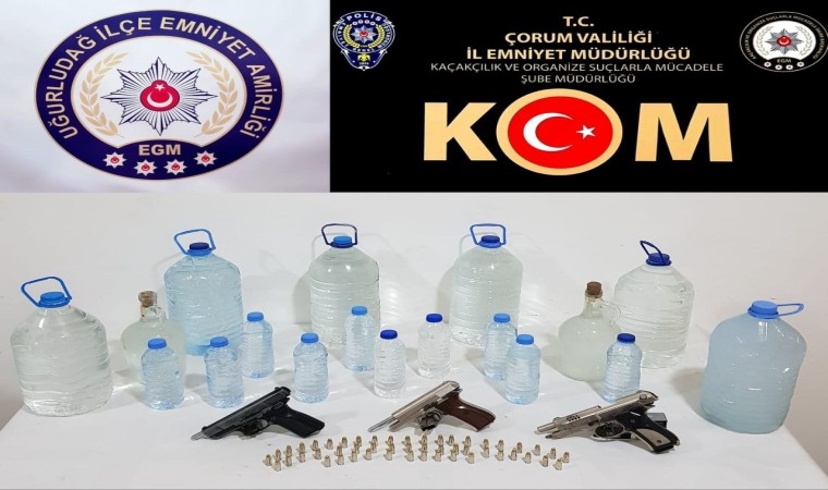Edinilen bilgilere göre, İl Emniyet Müdürlüğü Kaçakçılık ve Organize Suçlarla Mücadele Şube Müdürlüğü ekiplerince merkez, Sungurlu, Uğurludağ ve Mecitözü ilçelerinde gümrük kaçağı alkollü içki-sigara satışı ve silah mühimmatı ticaretini önlemeye amacı ile 4 ayrı operasyon düzenlendi. Operasyonlarda 8 kişi gözaltına alınırken, şüphelilerin ev, iş yeri ve araçlarında yapılan aramalarda 9 adet ruhsatsız tabanca, 164 adet tabanca fişeği, 246 litre el yapımı kaçak alkollü içki, 160 bin içi kıyılmış tütün doldurulmuş kaçak makaron sigara ele geçirildi. Gözaltına alınan şahıslar hakkında adli işlem başlatıldı.