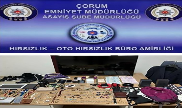 Edinilen bilgiye göre, Kale, Bahçelievler ve Gülabibey mahallelerinde 5 ayrı evde meydana gelen hırsızlık olayları üzerine Asayiş Şube Müdürlüğü Hırsızlık Büro Amirliği ekiplerince çalışma başlatıldı. Polis ekipleri yaptıkları 22 günlük araştırmanın ardından hırsızlık olaylarını gerçekleştiren şahsın 18 yıldır cezaevinde kalan ve iki ay önce tahliye edilen G.S. (37) olduğunu tespit etti. Zanlının Amasya’dan Çorum’a geldiğini öğrenen polis ekipleri, şüphelinin içinde bulunduğu otobüsü Bölge Trafik Müdürlüğü önünde bulunan kontrol noktasında durdurdu. Zanlıyı gözaltına alan polis ekipleri, şüphelinin üzerinde yaptıkları aramada 11 bin 240 TL para ve çalıntı cep telefonu, evinde yapılan aramada ise saatler, çantalar, kolyeler, küpeler, bileklikler, telefonlar, tabletler, flaş bellekler, televizyon, ütü, bayan iç camaşırları, takım elbise, dürbün, tesbihler vb. eşyalar ele geçirildi.