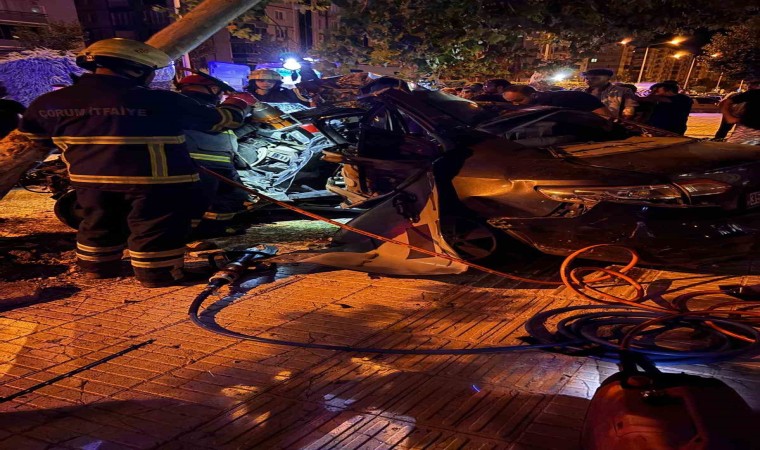 Çorum’da meydana gelen trafik kazasında, ağaca çarpan otomobilde bulunan 2 kişi hayatını kaybetti.