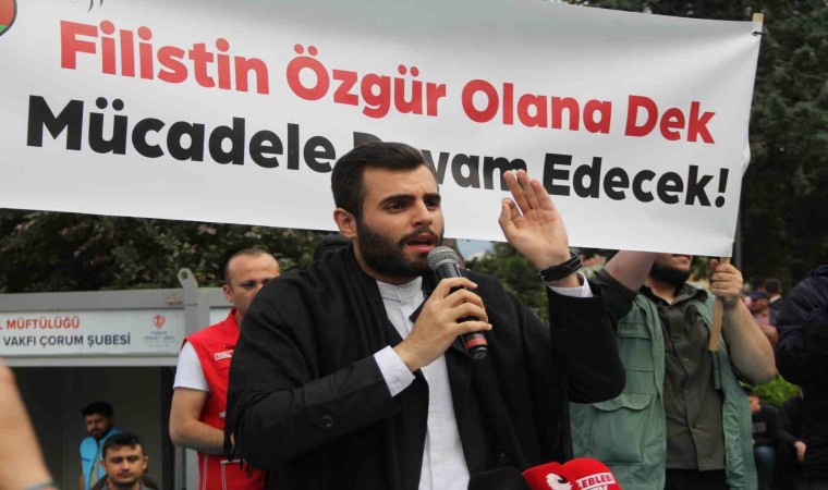 Yürüyüşe Belediye Başkanı Dr. Halil İbrahim Aşgın, Hitit Üniversitesi Rektörü Prof. Dr. Ali Osman Öztürk, Selahaddin Eyyubi’nin torunu Naim Eyyubi, siyasi partilerin il başkanları, Çorum Filistin Platformu üyeleri ve vatandaşlar katıldı.