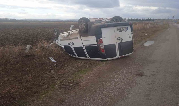 Çorum’un Alaca ilçesinde, sürücüsünün kontrolünden çıkan hafif ticari araç ters döndü. Kazada sürücü yara almadan kurtuldu.