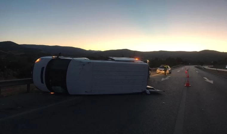 Mustafa ULUSOY/OSMANCIK (Çorum), (DHA)- ÇORUM’un Osmancık ilçesinde, lastiği patlayan minibüsün devrilerek bariyerlere çarptığı kazada 1’i çocuk 10 kişi yaralandı.