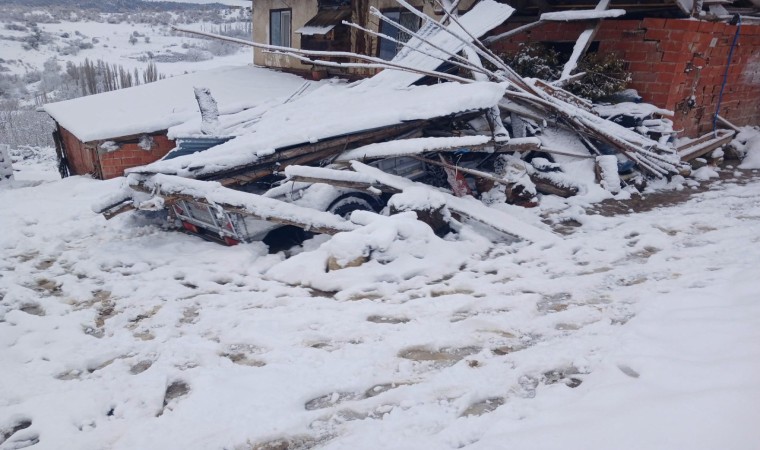 Çorum’da dün akşam saatlerinde başlayan kar yağışı, sabah saatlerine kadar devam etti. Kar yağışı Osmancık ilçesineki köyleri beyaza bürüdü. Osmancık ilçesine bağlı Tepeyolaltı köyünde kar kalınlığı 30 santimetreye ulaştı. Köyde garaj olarak kullanılan bir müştemilat, karın ağırlığına dayanamayarak römorkun üzerine çöktü.